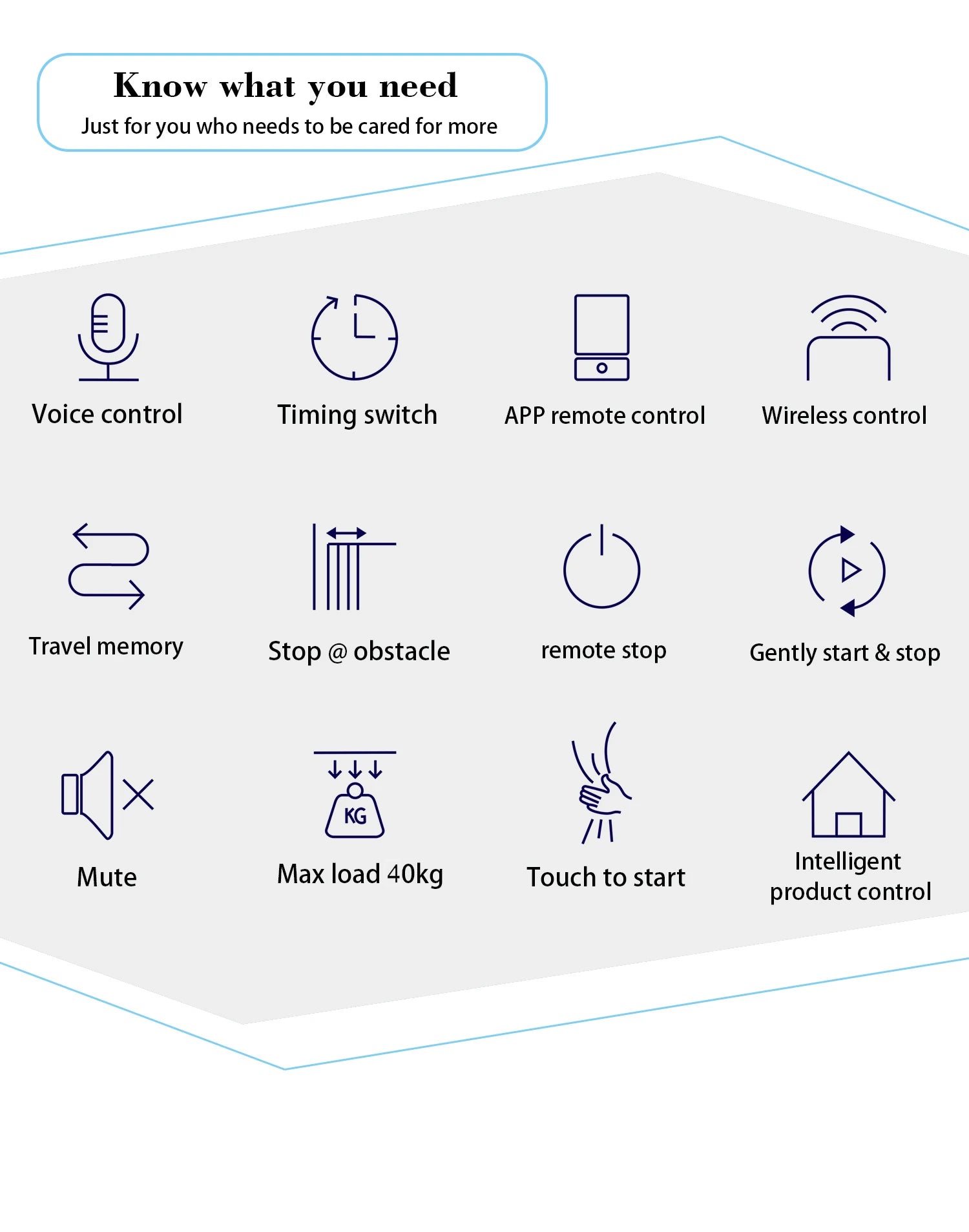 This intelligent home automation motor control support remote control too, it is easy operation, good for kids and elderly person.